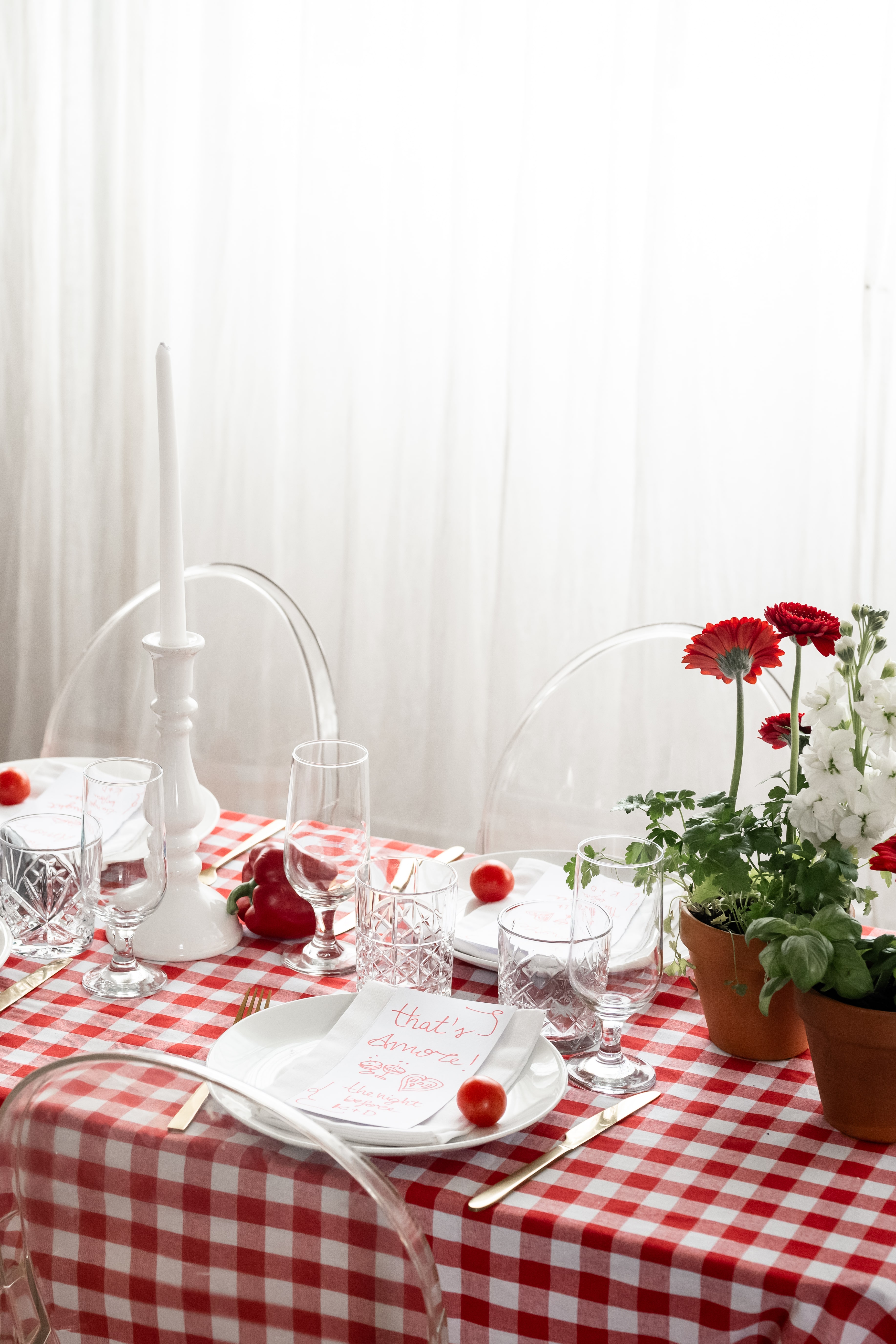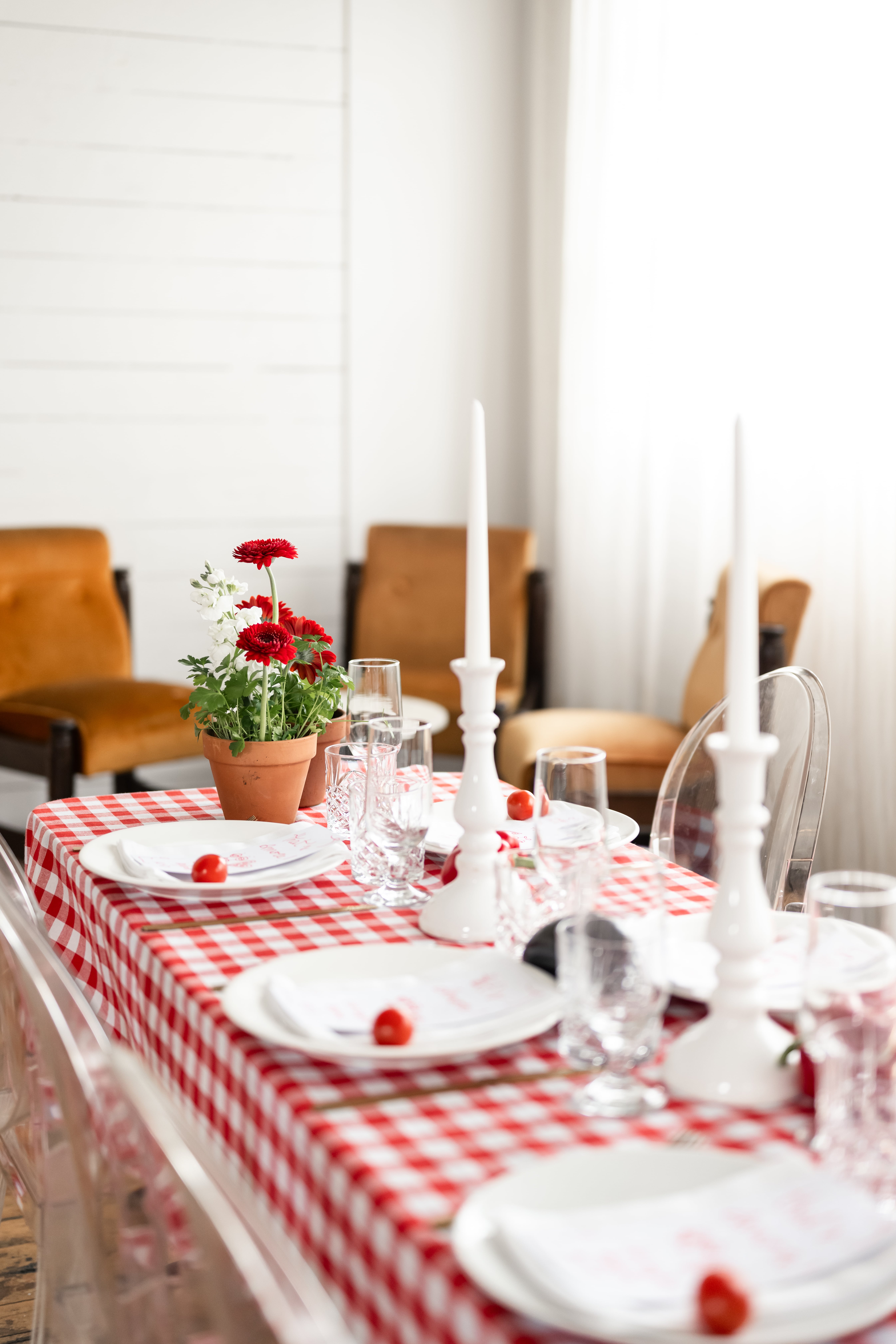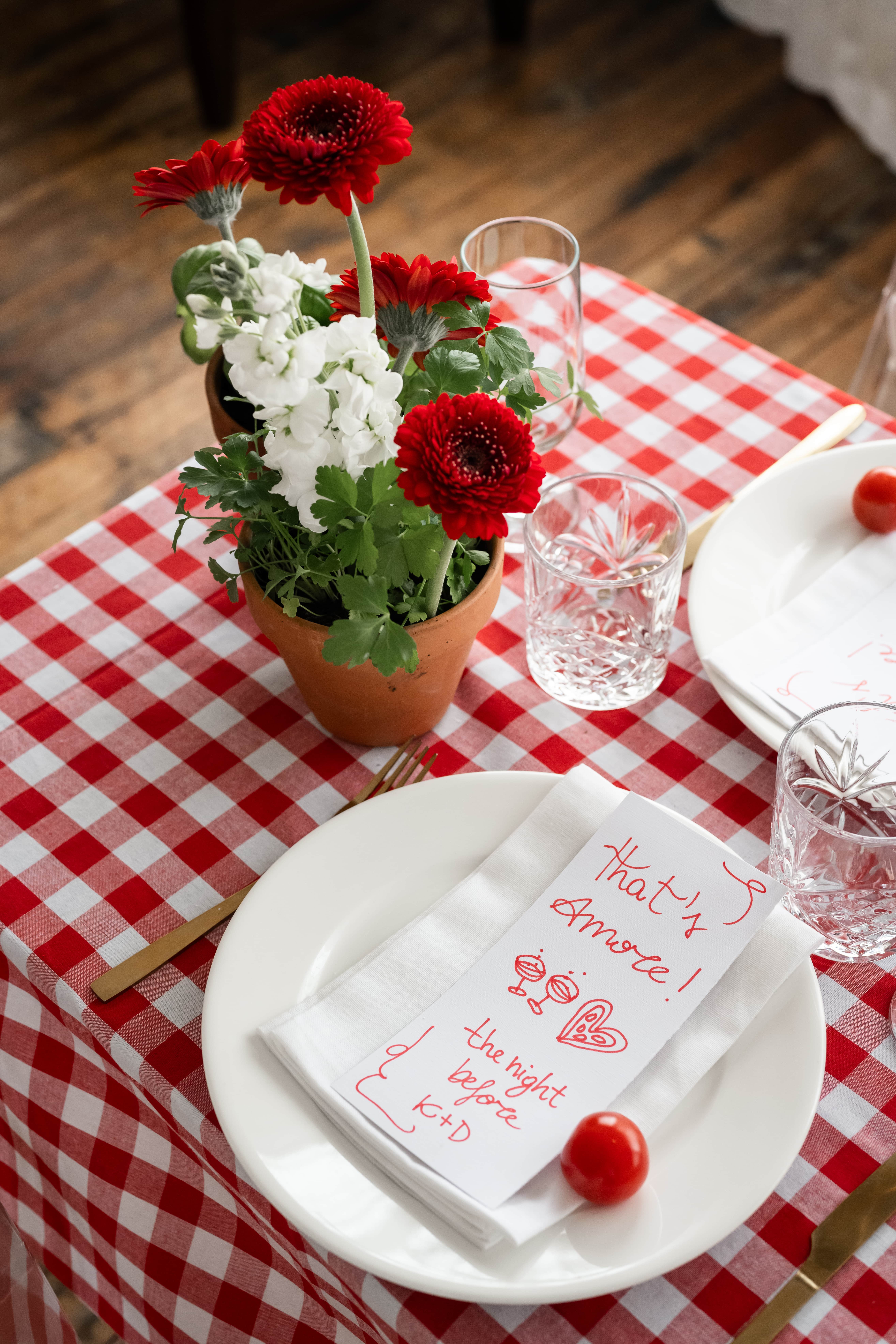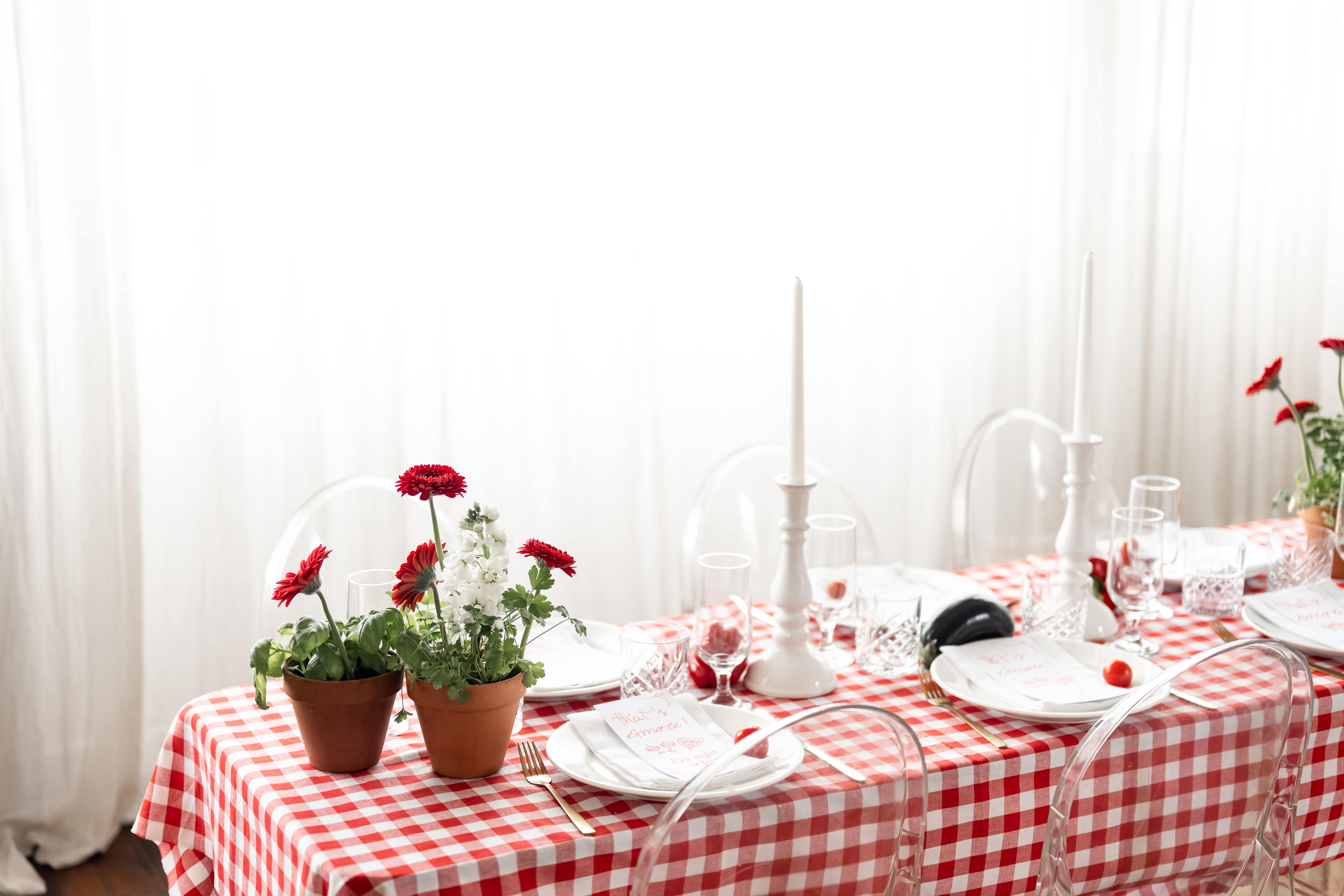 Italian wedding style has become increasingly loved in New Zealand (and everywhere in the world) because it celebrates authenticity, natural materials, understated elegance and much more... For this dinner, the red and white checked tablecloth brought an immediate sense of home and tradition, echoing the relaxed charm of Italian trattorias and summer gatherings, for those who want a touch of warmth and home while still embracing true Italian style. Terracotta vases filled with red and white flowers introduced a soft Mediterranean warmth that blended beautifully with the gentle textures of the space. Kindred photographer ( https://www.kindred.photo/blog/styled-shoot-at-the-canape-room/ ) beautifully described the light as soft and enveloping, and it enhanced every colour and surface in the room. Together these elements created a harmonious aesthetic that felt refined, welcoming and perfectly suited to an intimate event.