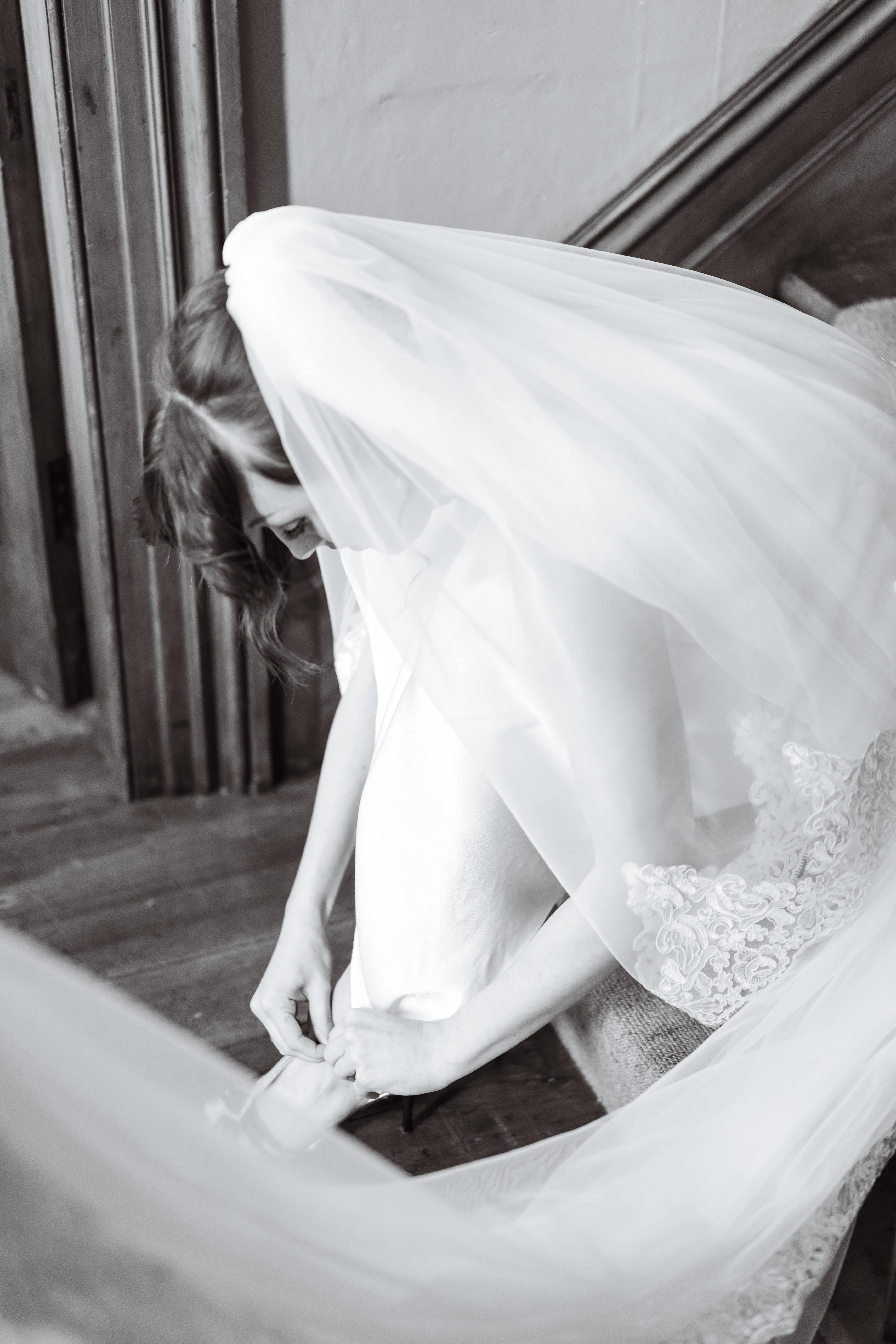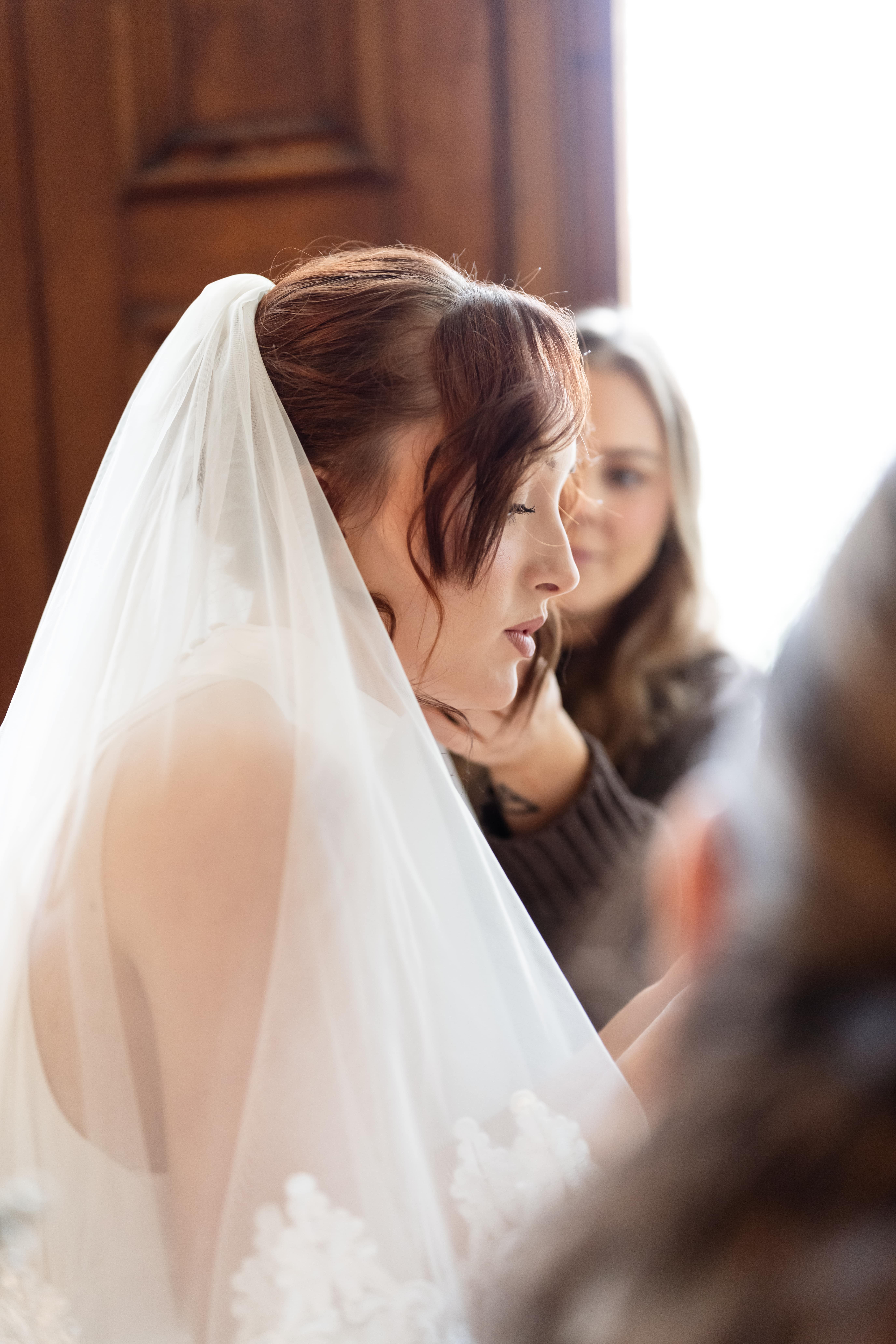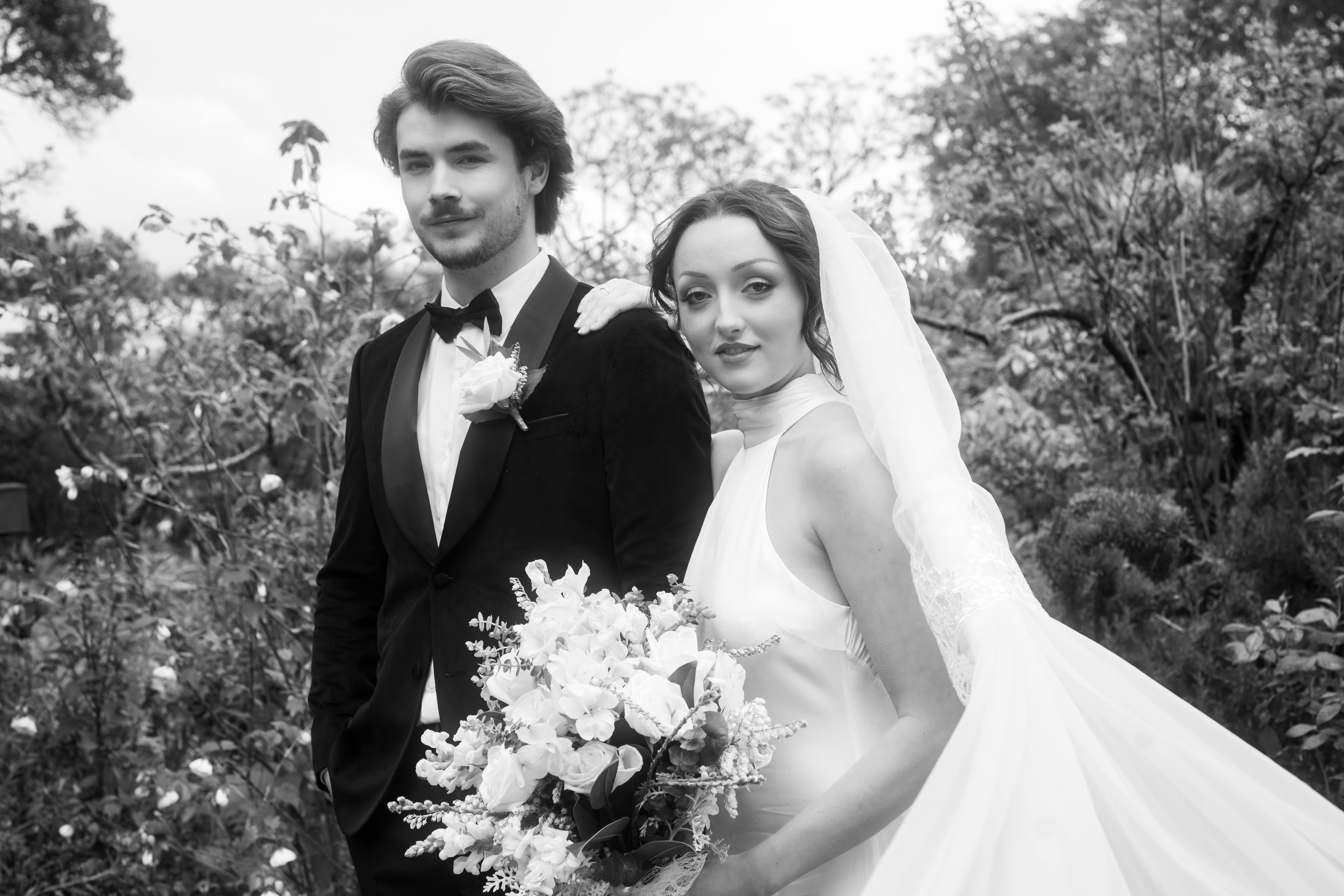 The bride, Hannah, embodies quiet sophistication. Her silk gown drapes fluidly, her lace-edged veil falling like a whisper of history. When Jaymie, the MUA, first saw her, she smiled and said, “You remind me of Rose from Titanic.” And indeed, there was something of that timeless grace about her, the porcelain skin, the romantic composure, the gentle strength behind every glance.